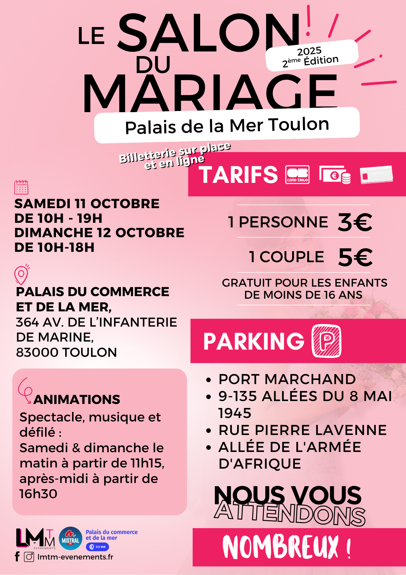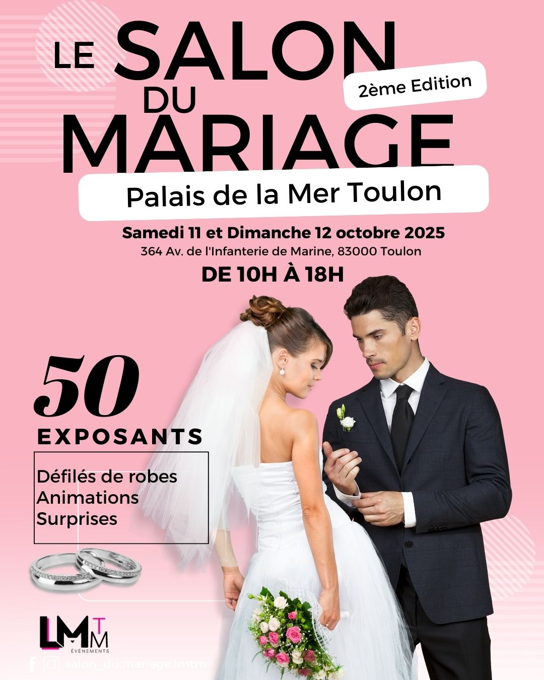 Le Salon du Mariage de Toulon ouvre ses portes pour une deuxième édition exceptionnelle les 11 et 12 octobre 2025 au prestigieux Palais de la Mer.